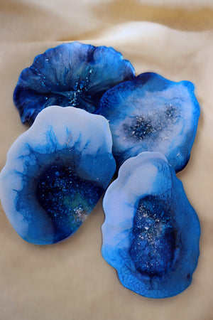 Blue stone crystal droplets