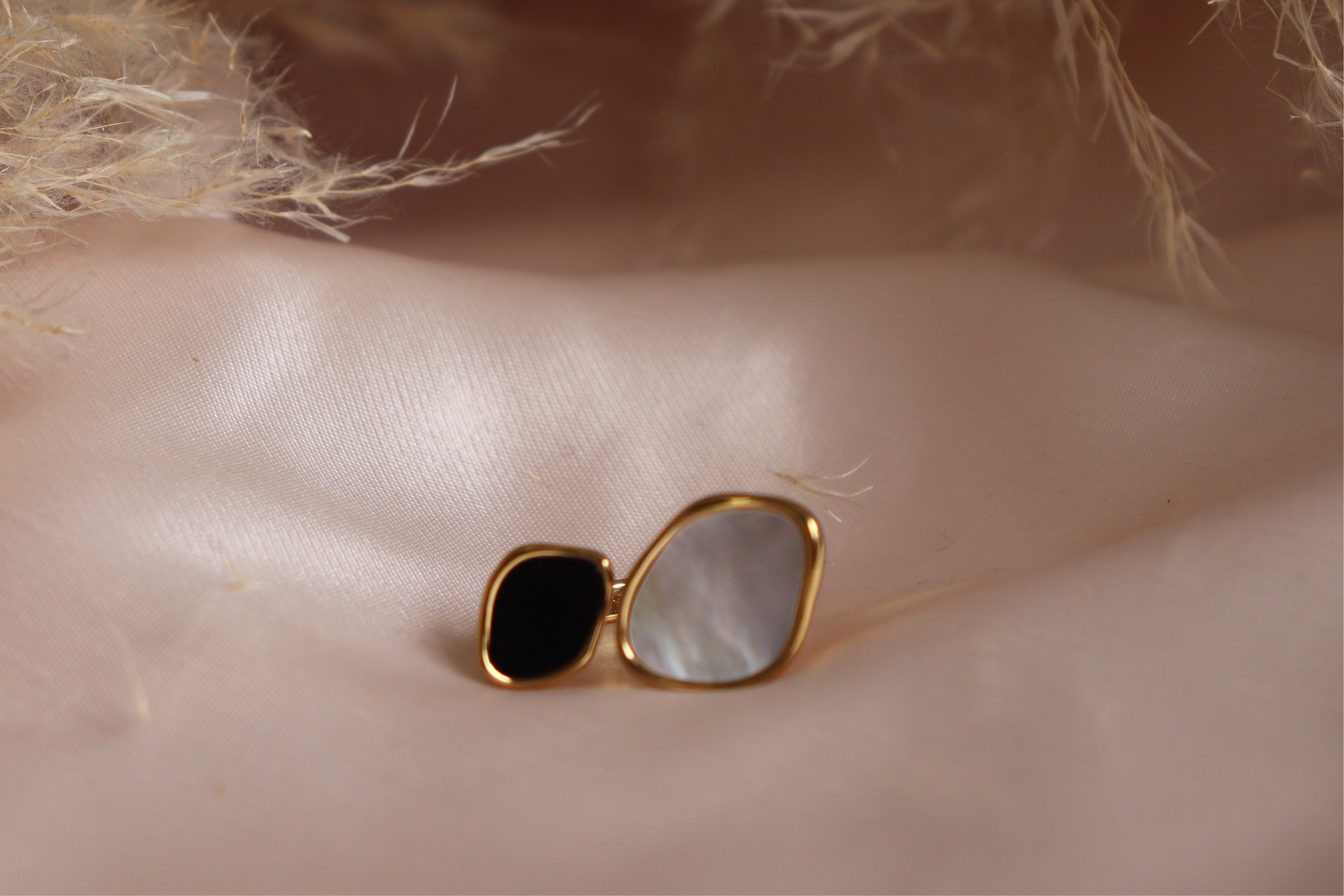 Mother of pearl and onyx ring