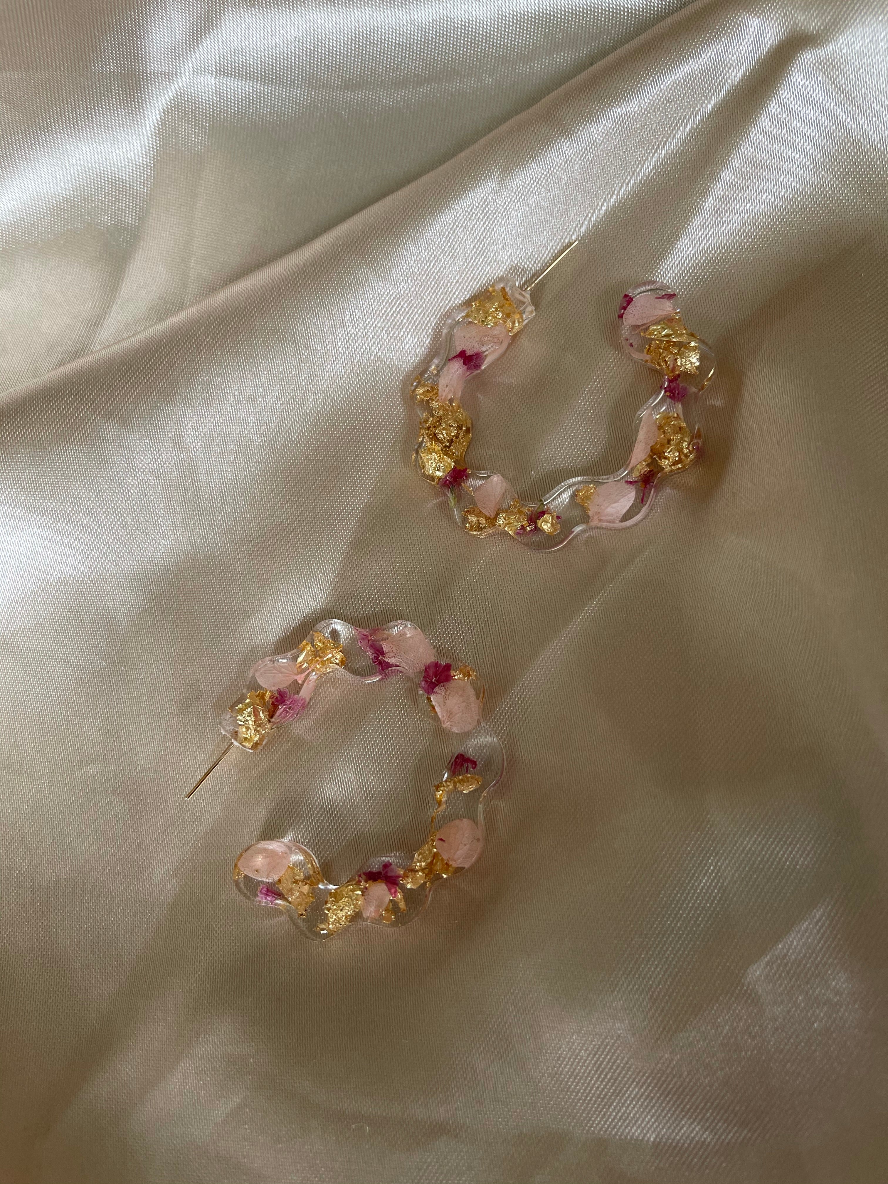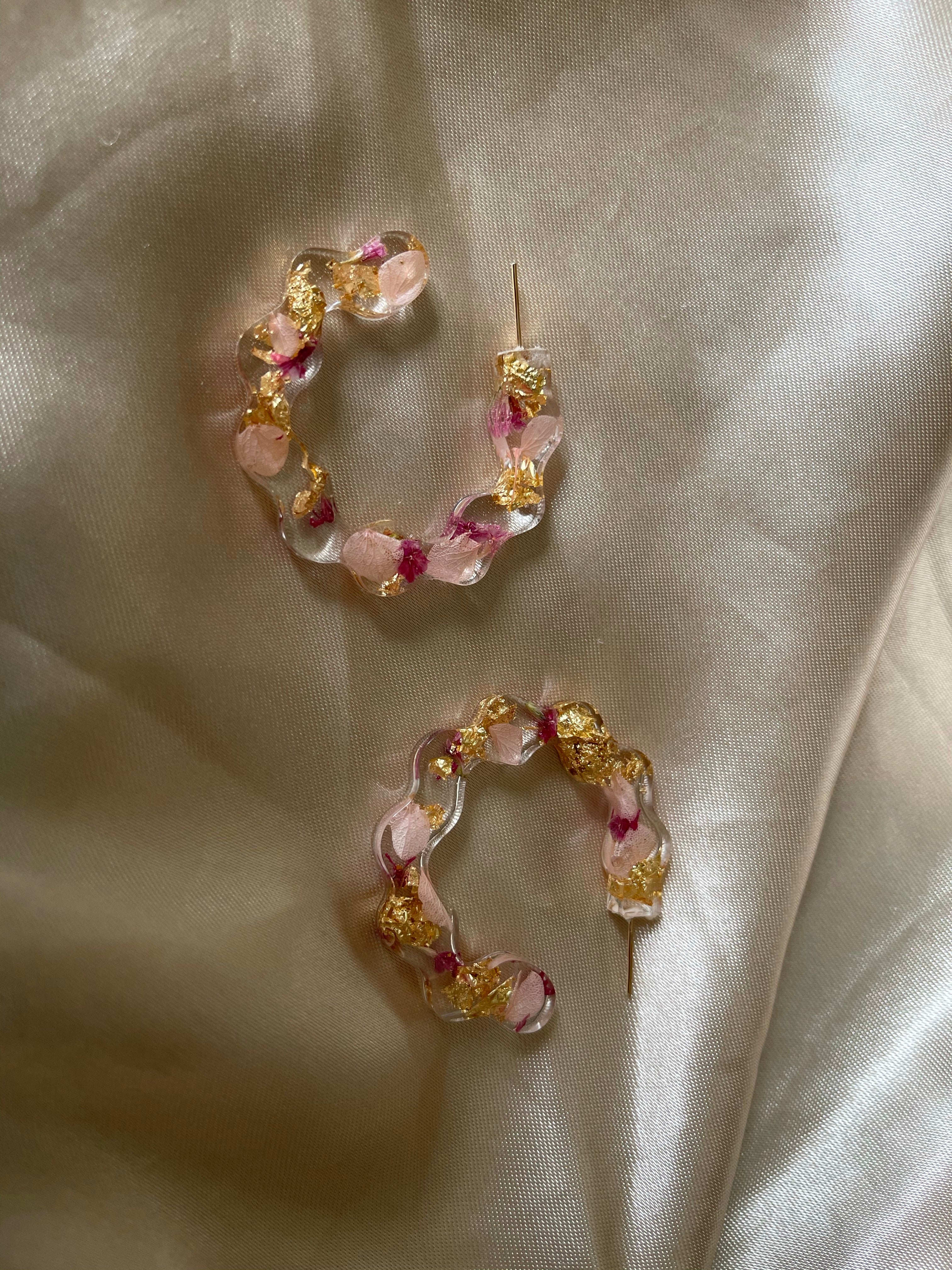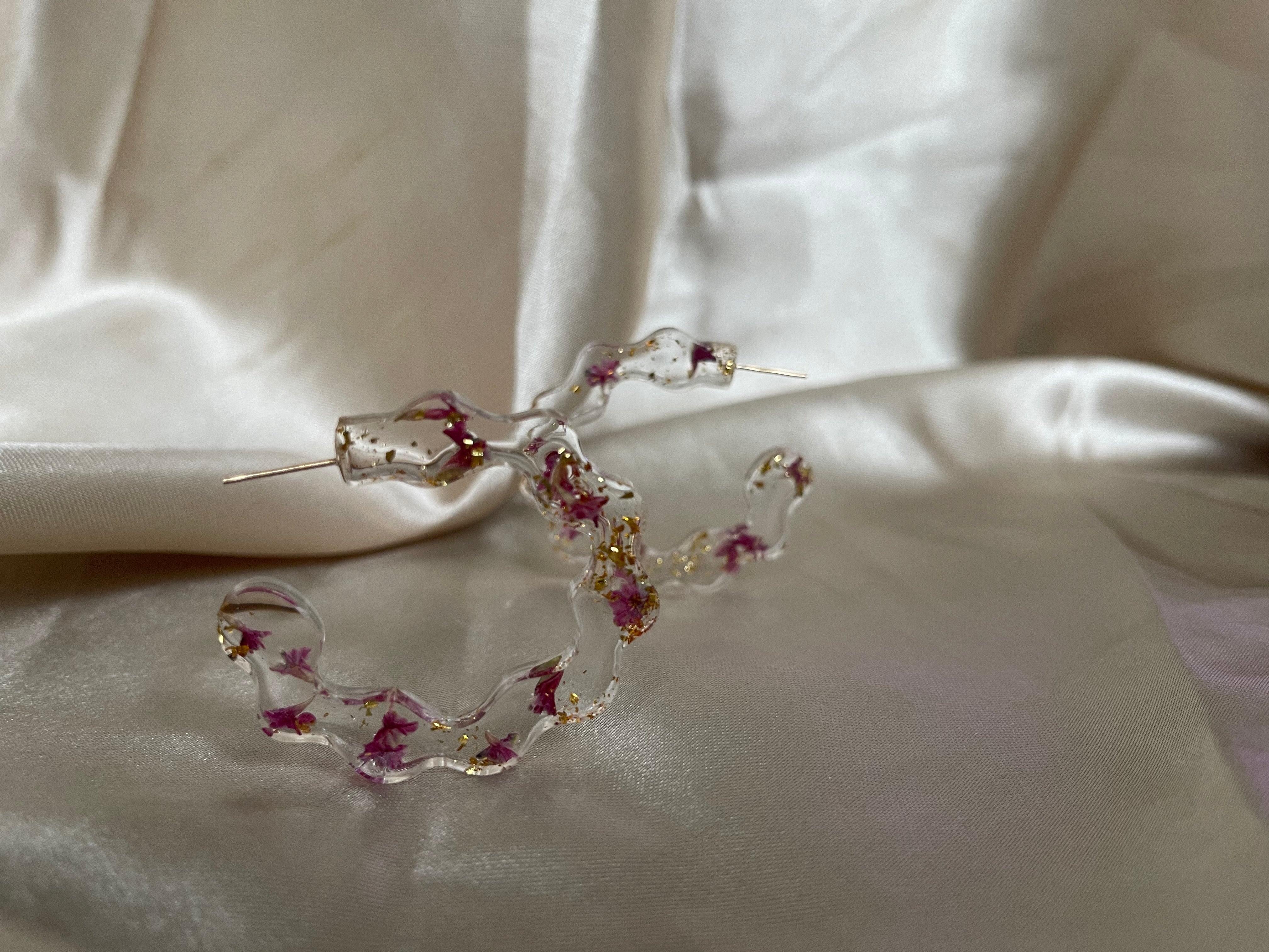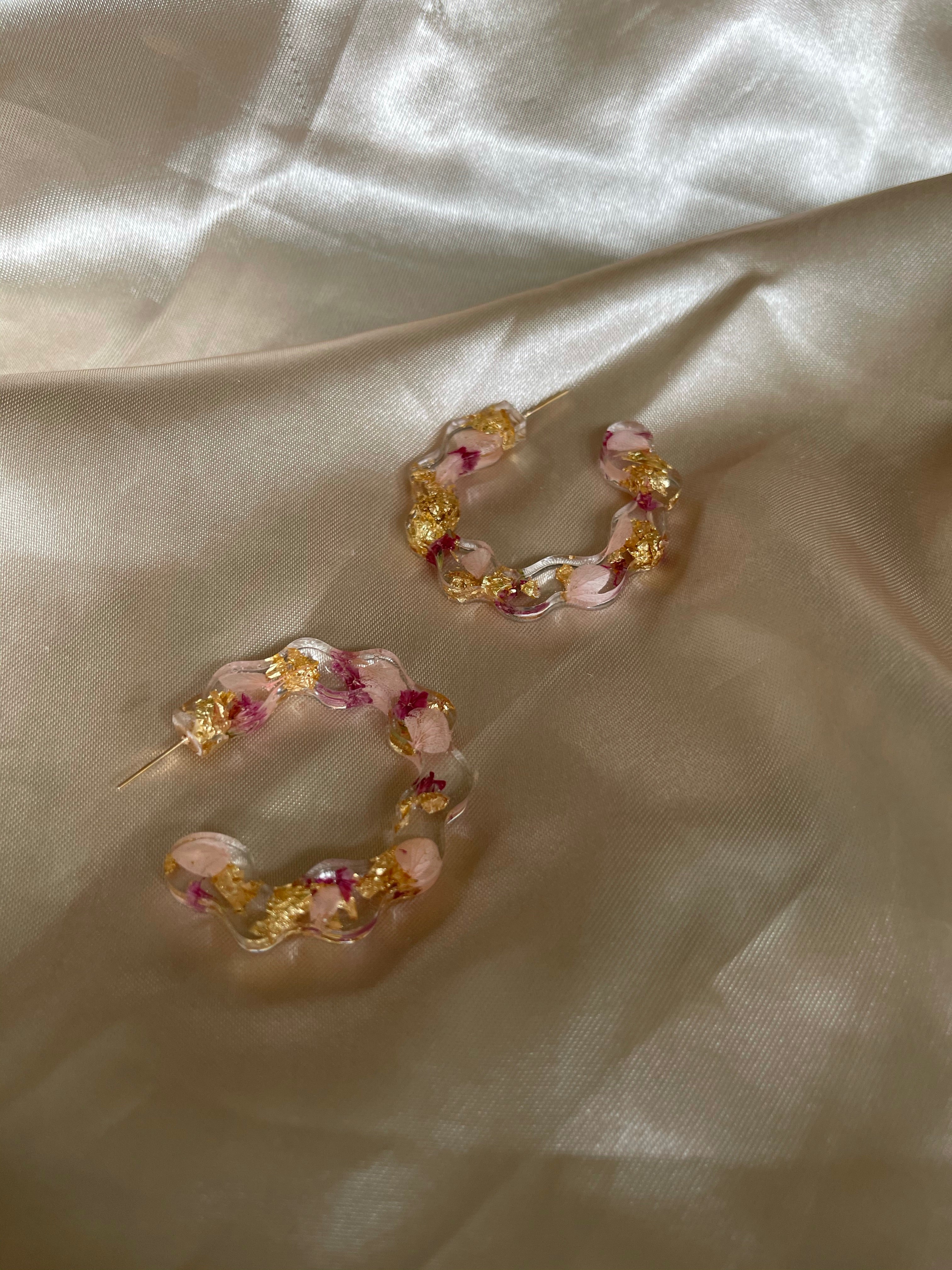 Abstract curvy hoops come with dried flowers as interior design and gold leaf