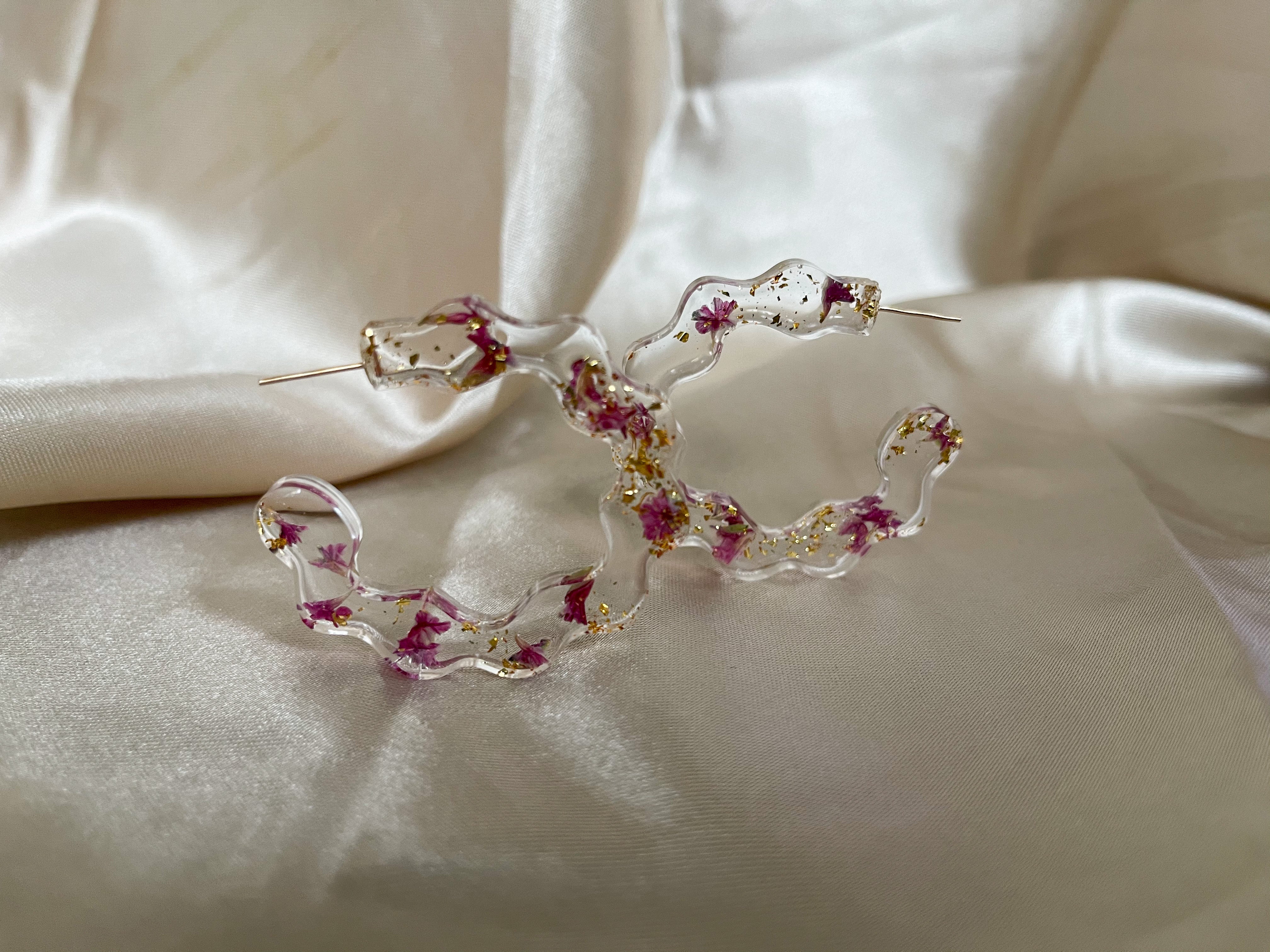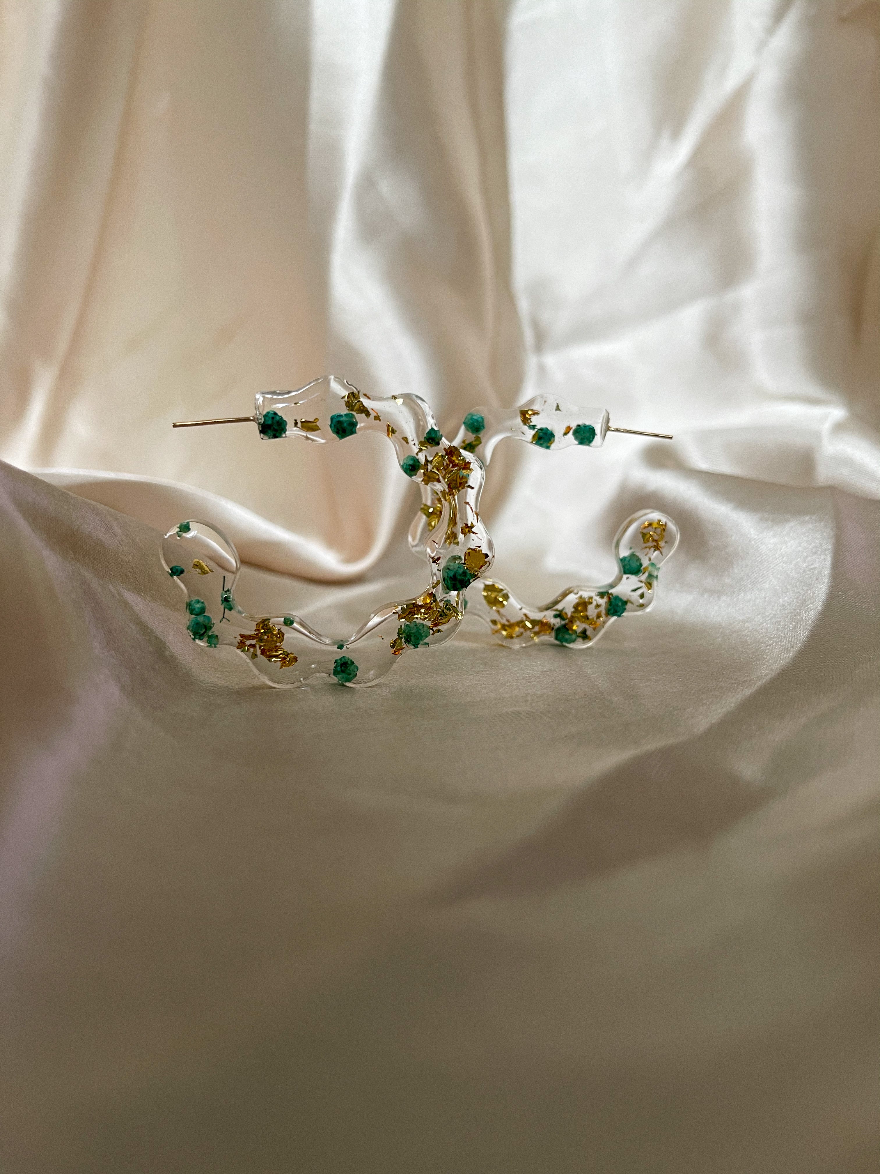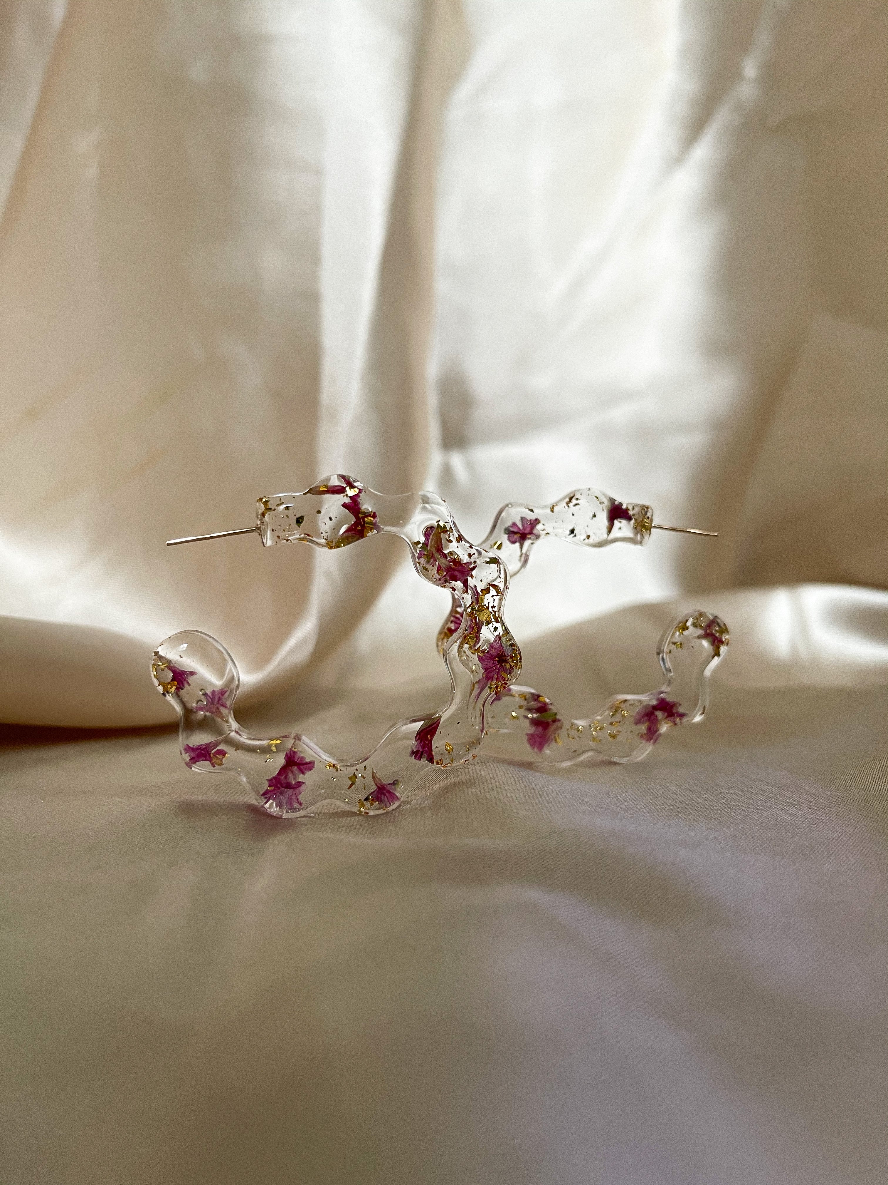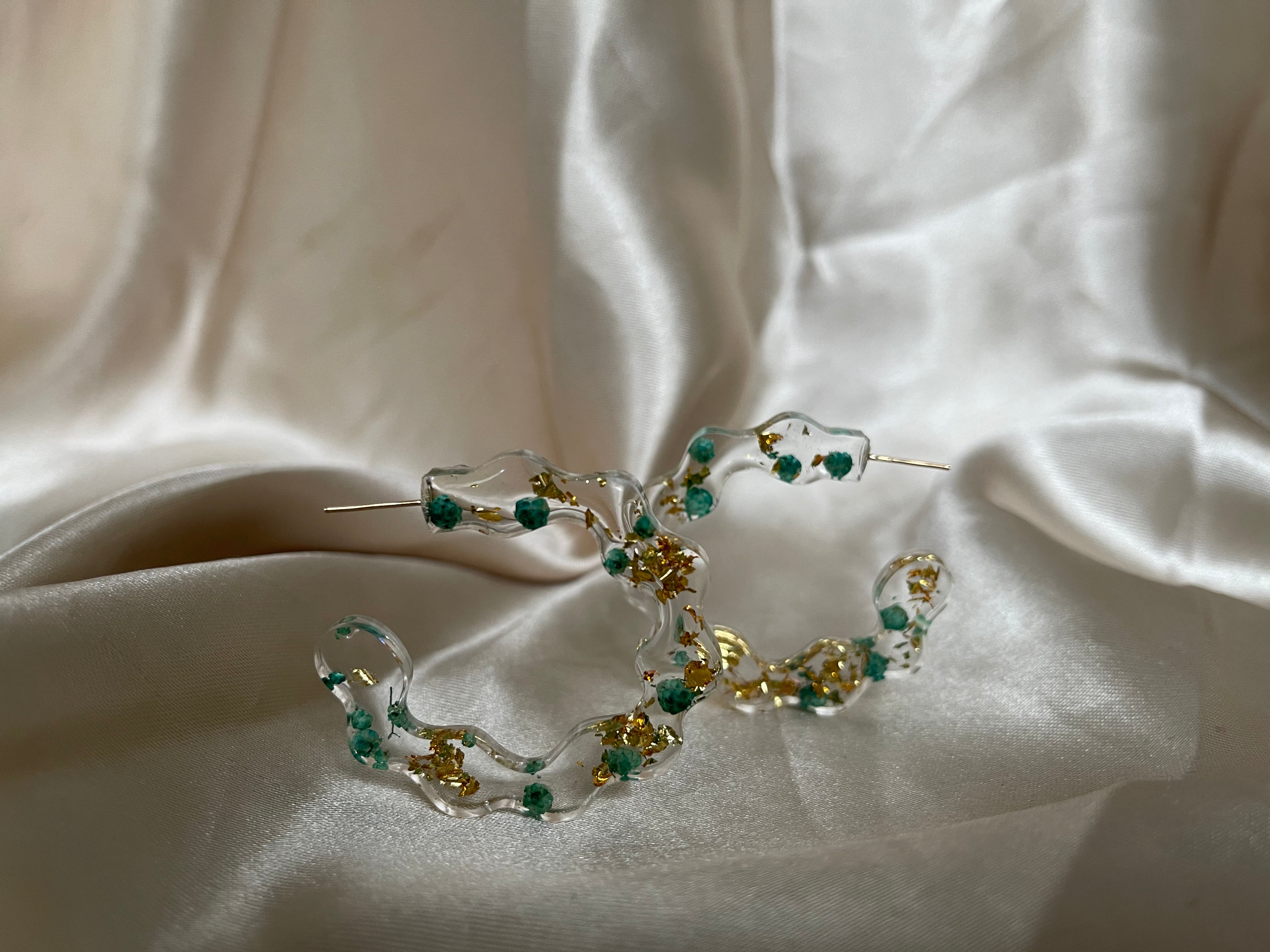 Abstract curvy hoops come with dried flowers as interior design and gold leaf