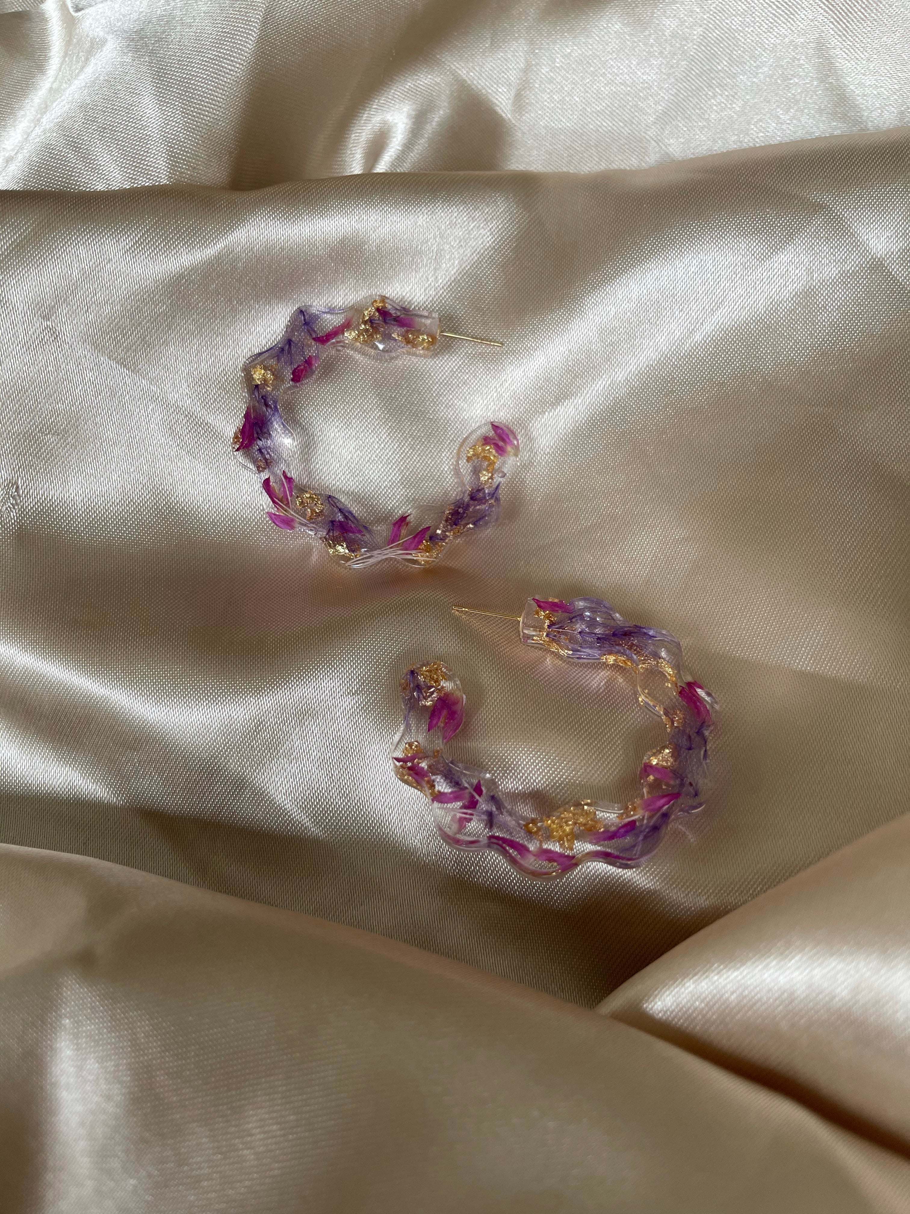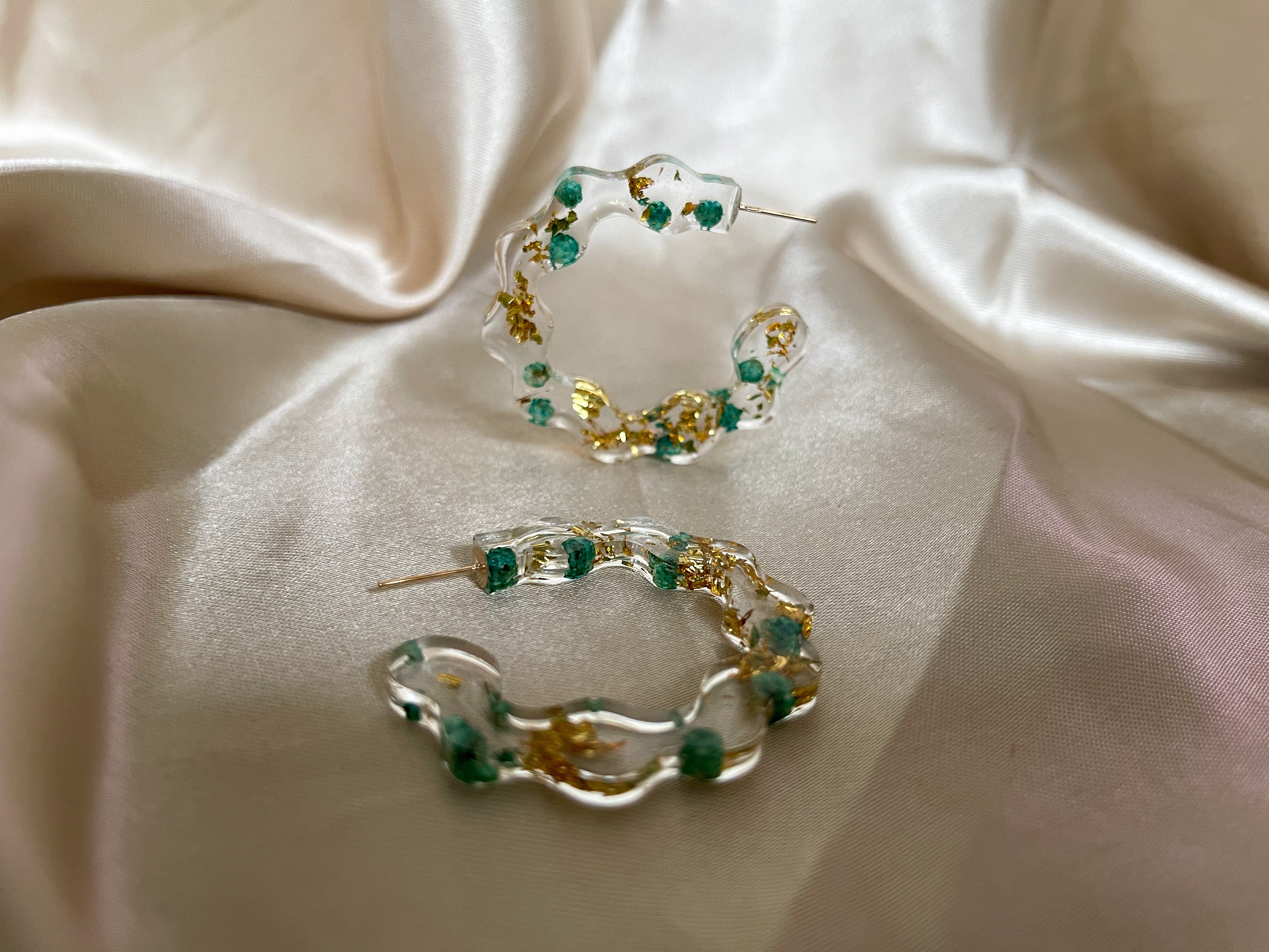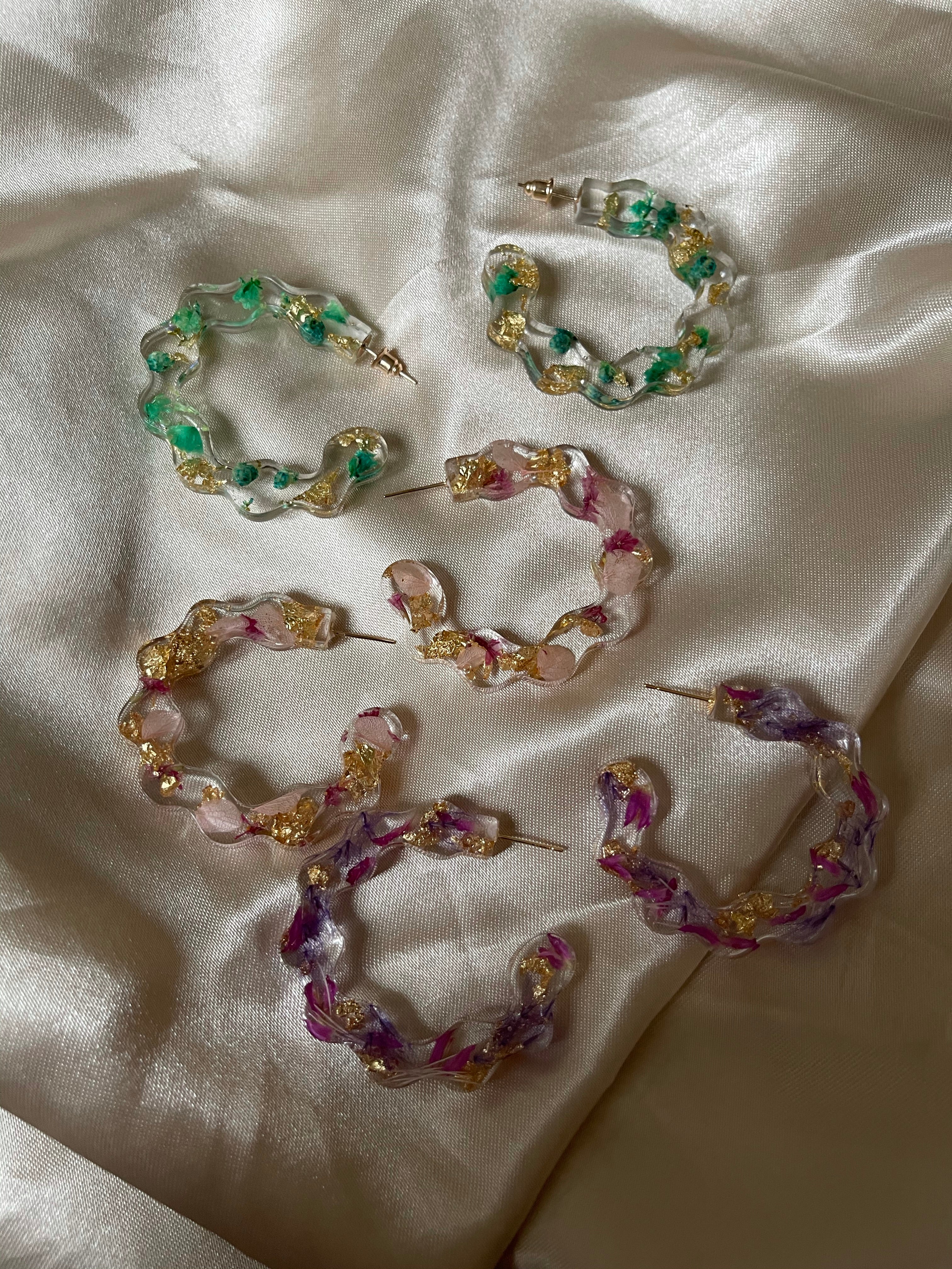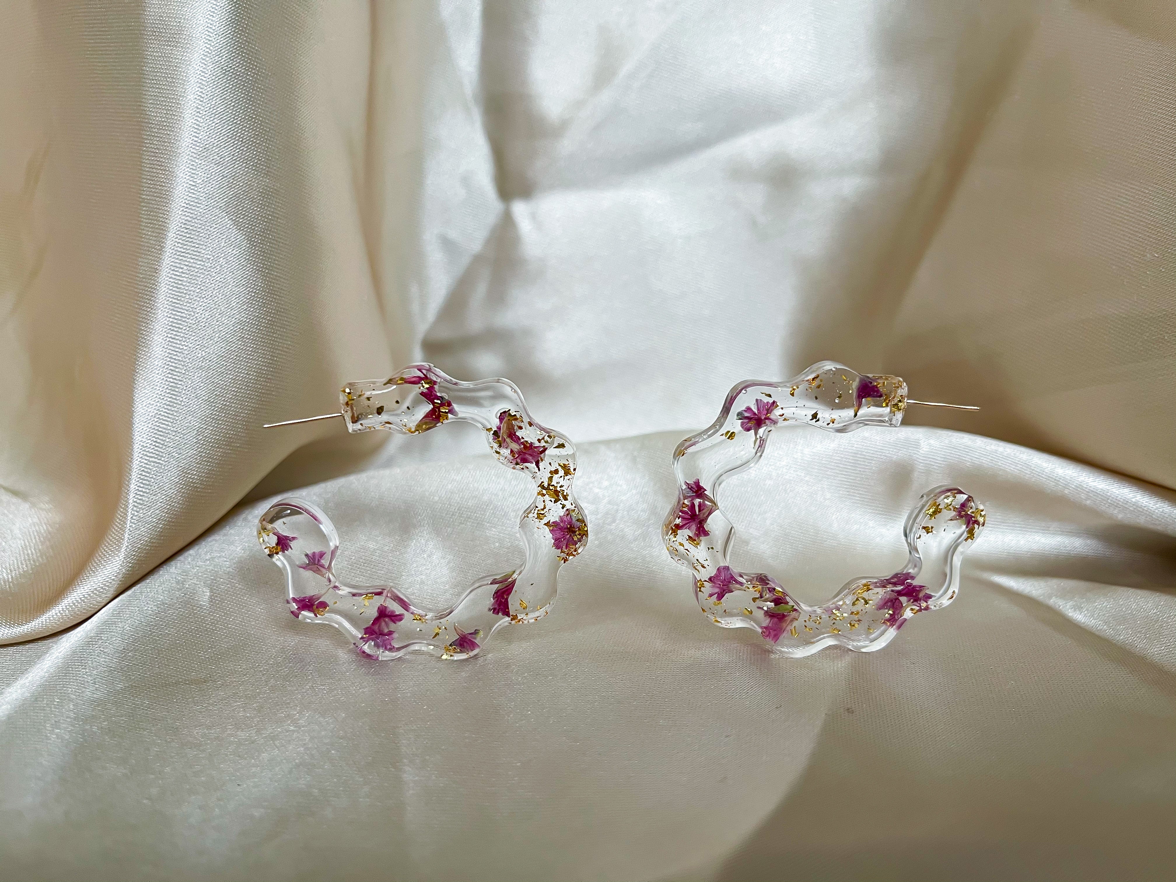 Abstract curvy hoops come with dried flowers as interior design and gold leaf