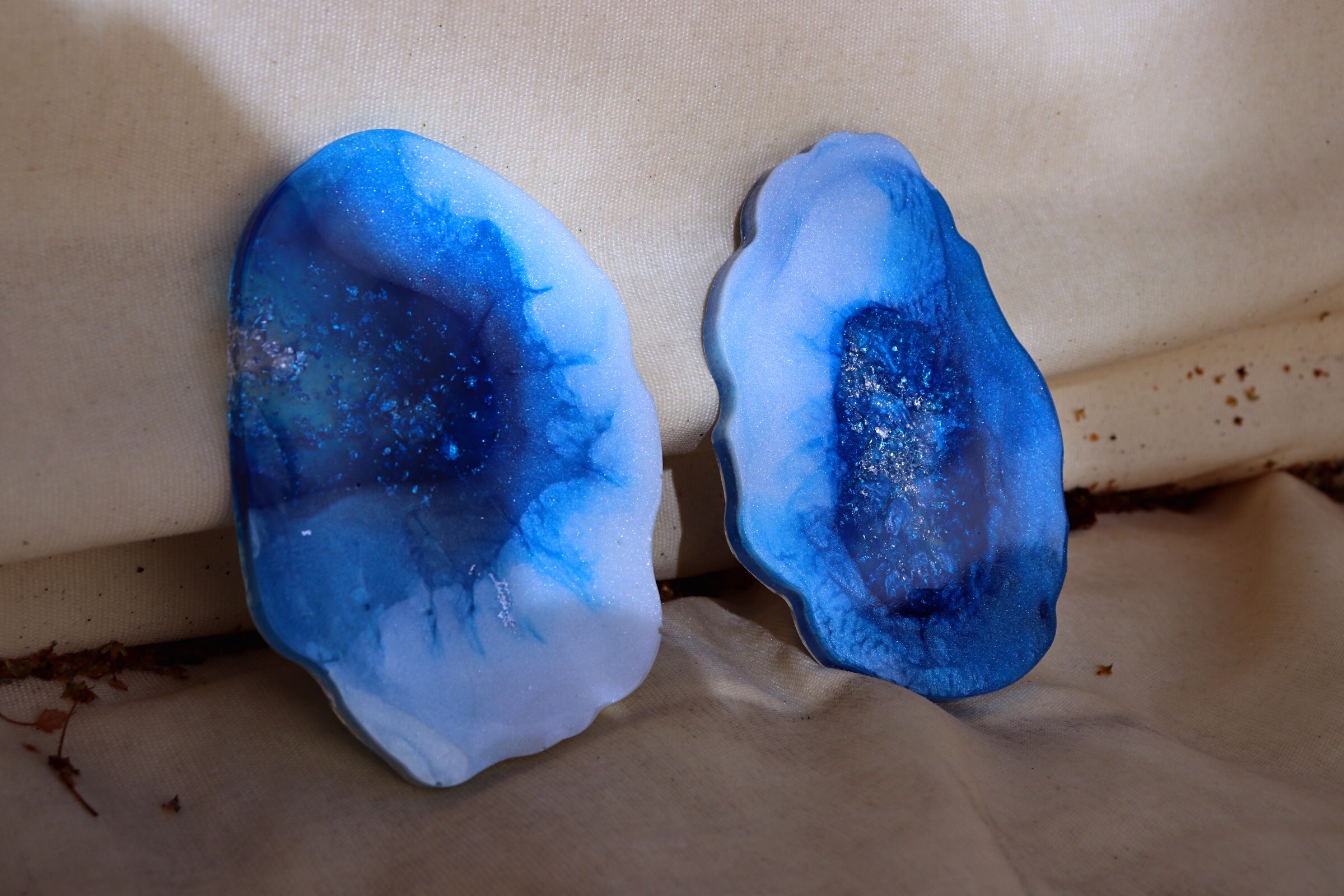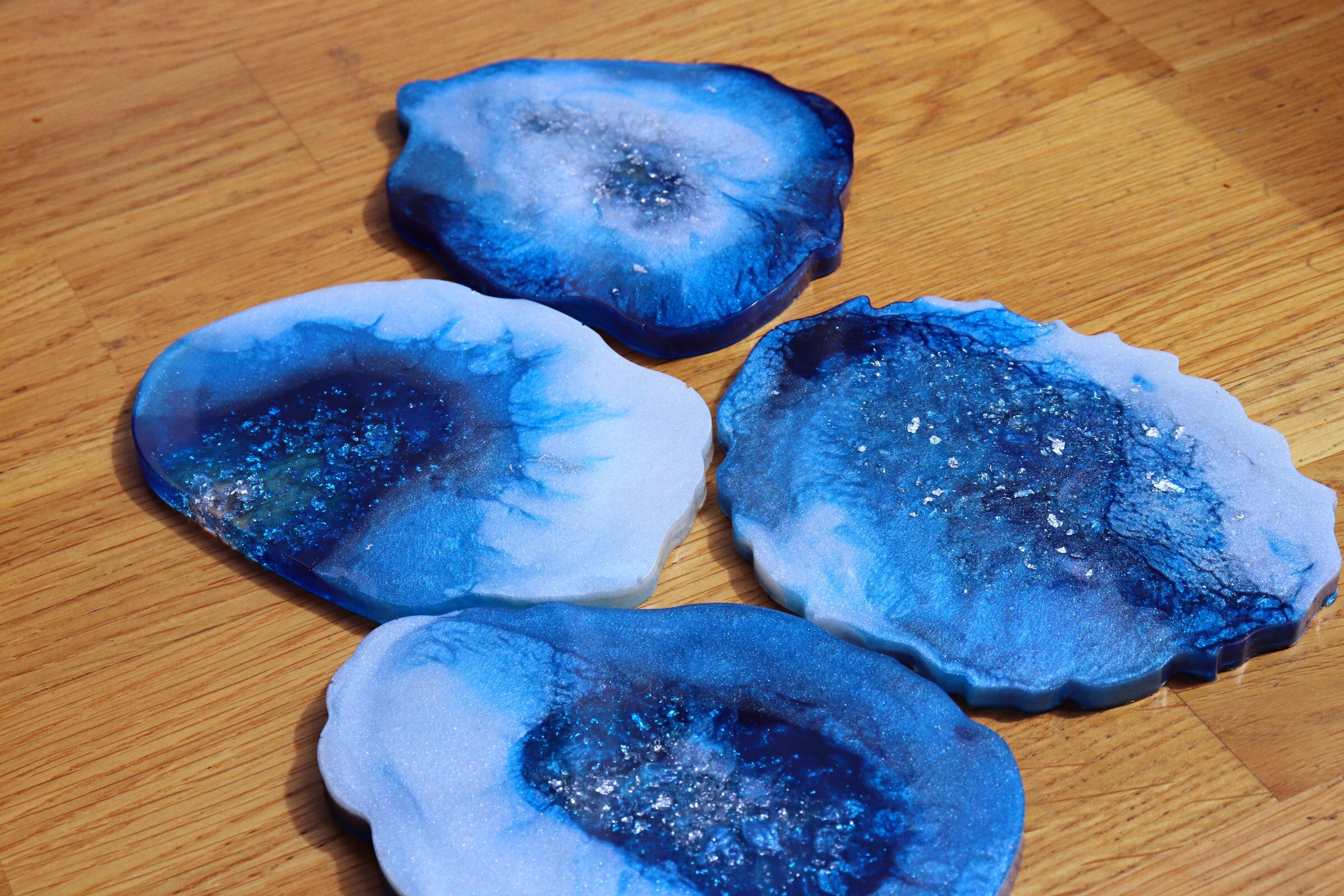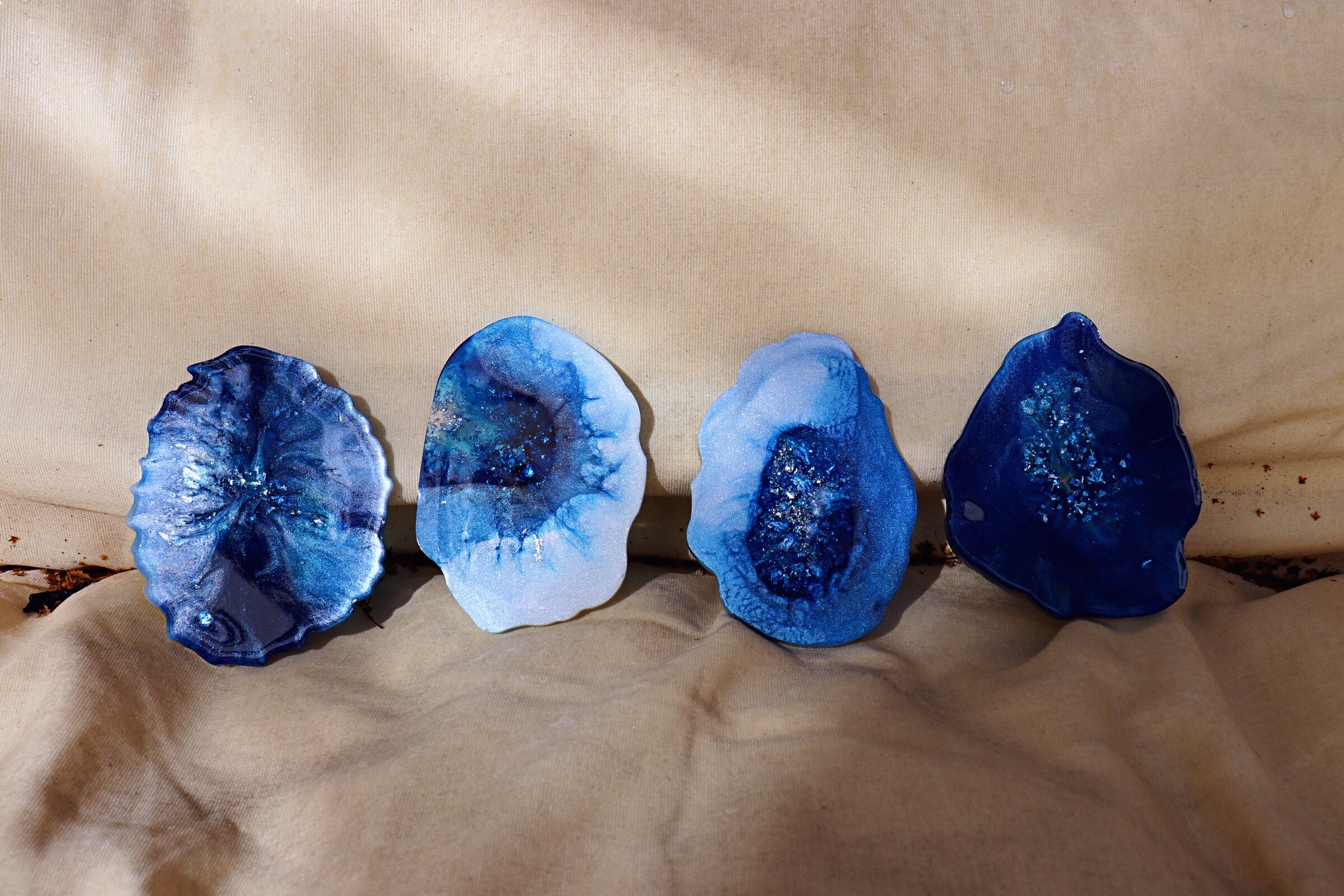 Ocean coaster set with deep blue tones with either silver or gold. The design will differ every time as it's a fluid art piece but an image will be sent before postage.